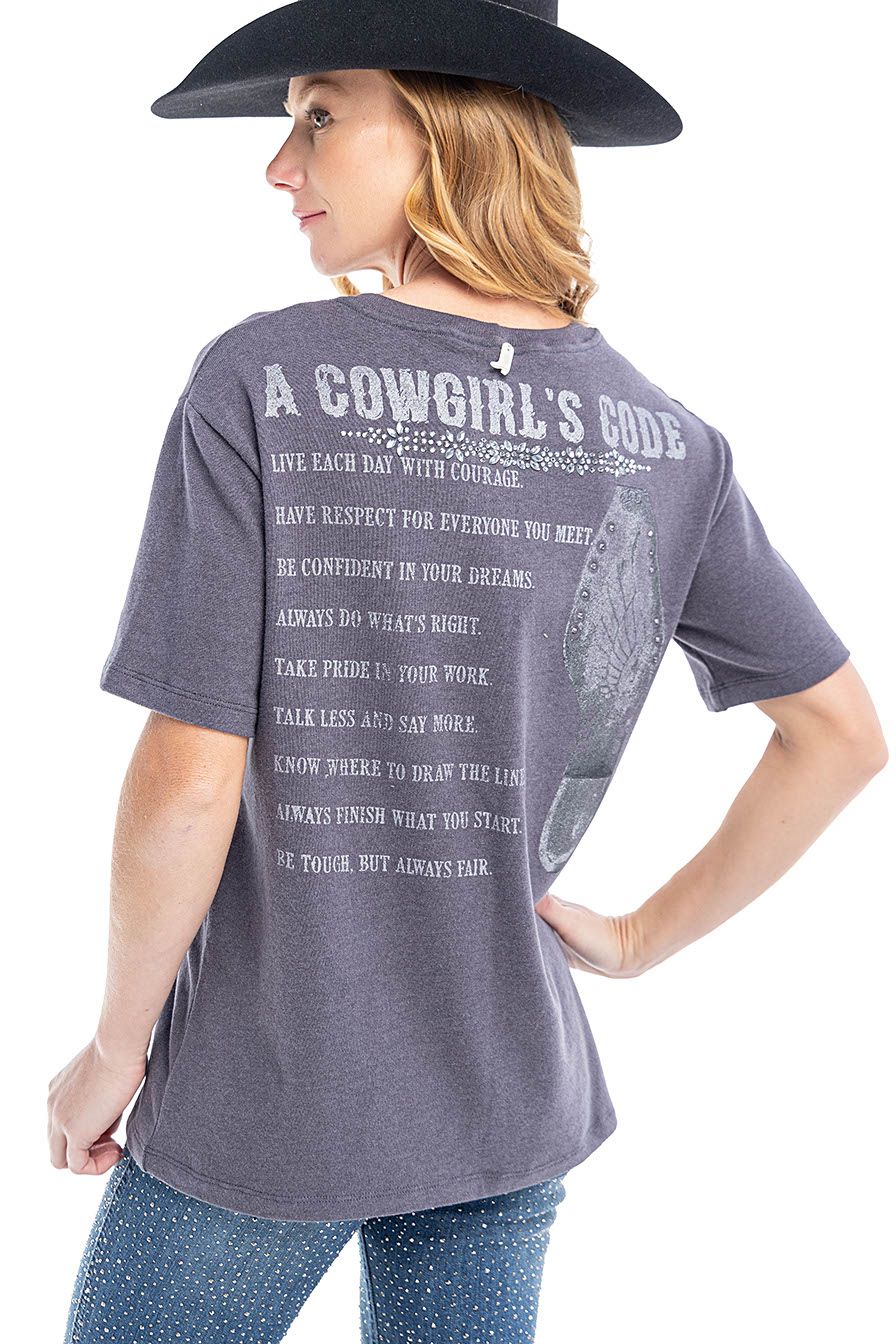 T-SHIRT FEMININA COR CINZA AZULADA ZENZ WESTERN