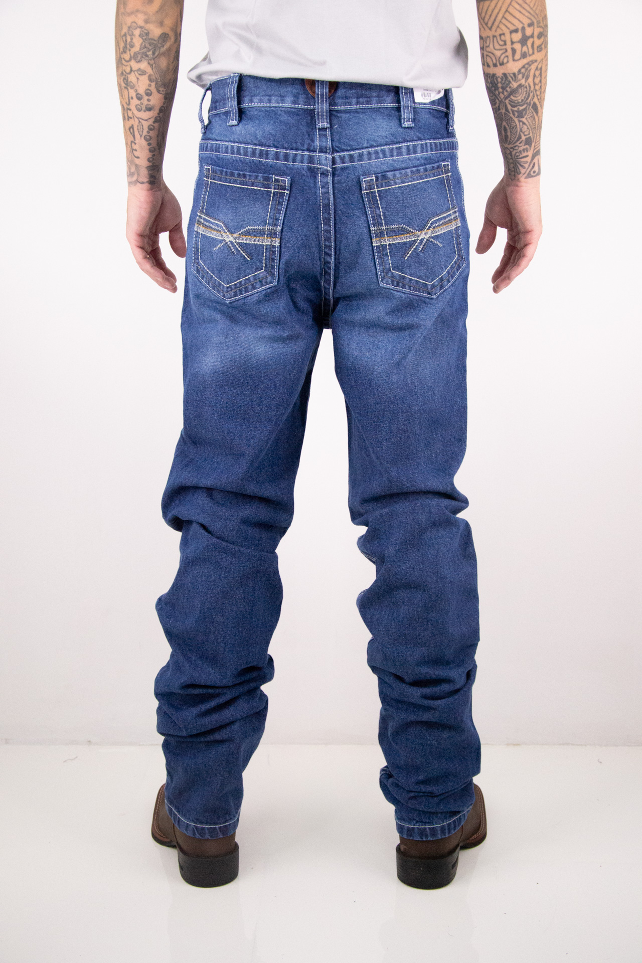 Modelagem: Reta com ajuste mais largo nas pernas, servindo perfeitamente com o uso de botas texanas