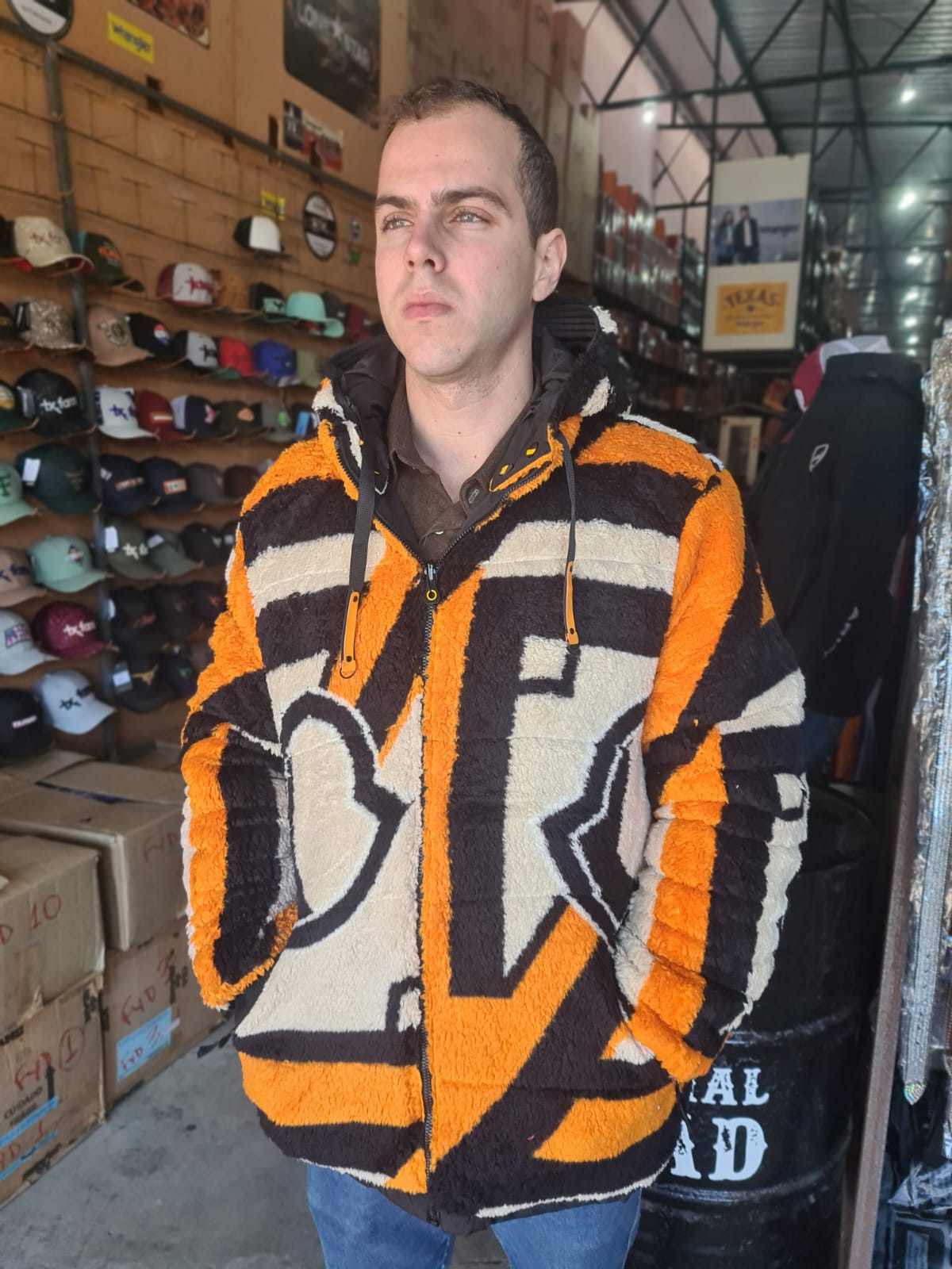 Jaqueta Masculina Dupla face / Grossa com Pêlo - Preta e Laranja