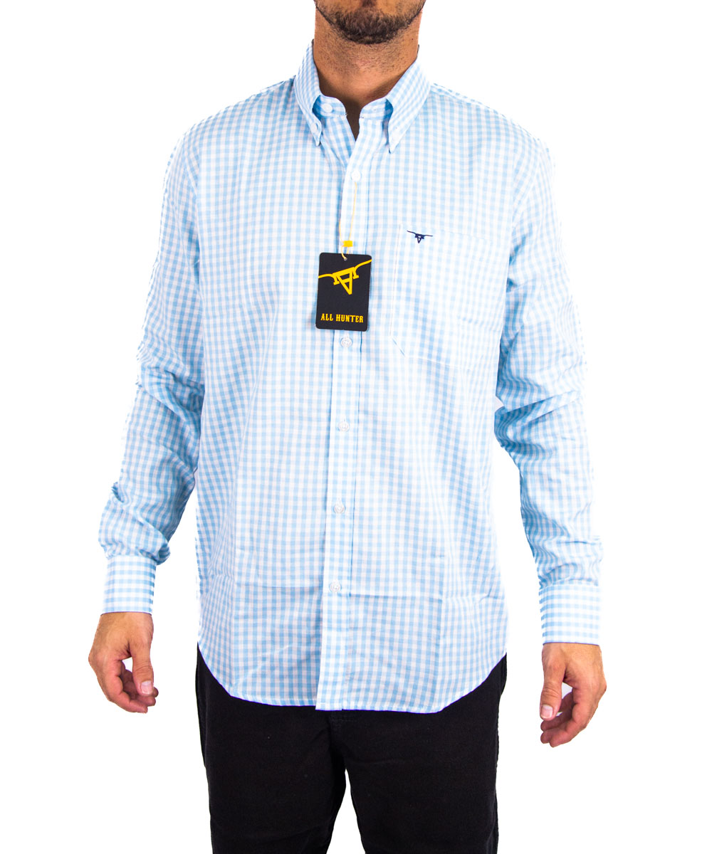 Camisa Masculina All Hunter - Manga Longa Azul Piscina/Branco