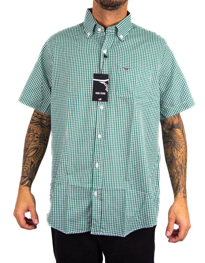 Camisa Masculina King Farm - Manga Curta Xadrez Verde