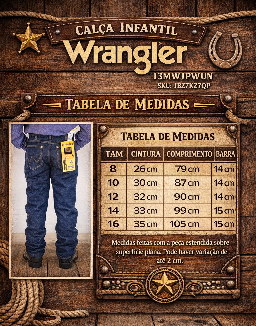 Calça Infantil Masculina Wrangler 100 % Algodão 13MWJPWUN