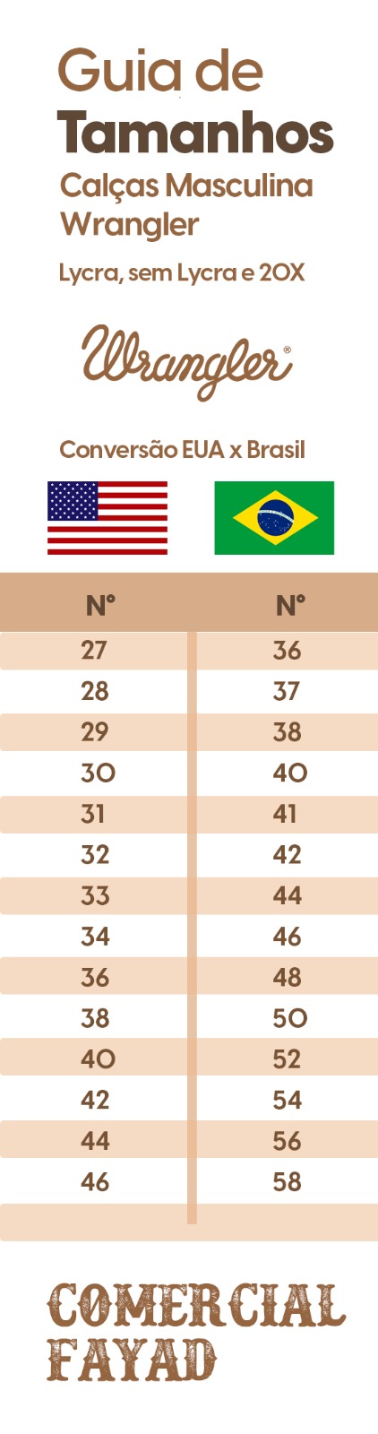 A calça masculina da 20x é bastante conhecida pela sua durabilidade e estilo clássico. A marca 20x tambem é fabricada pela wrangler, é famosa por suas roupas de trabalho e jeans, e suas calças costumam ter um corte confortável, ideal para quem precisa de resistência e praticidade no dia a dia.