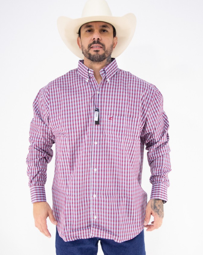 Camisa Masculina Classic Manga Longa - Xadrez Vinho