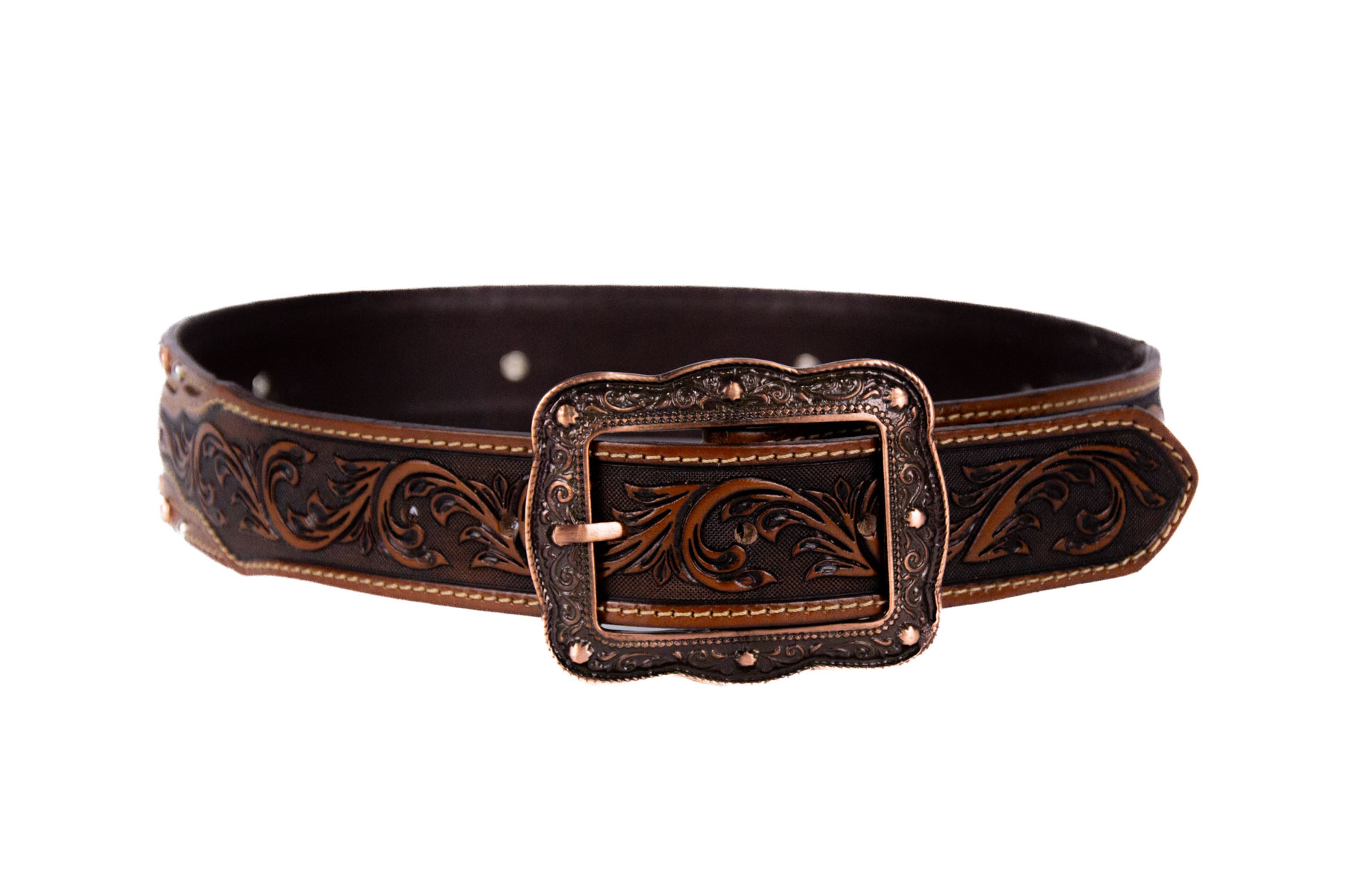 Fabricado em couro legítimo, 4,5cm de largura aprox, com detalhes em bordados (entalhados), charroas de material sintético e fivela de metal removível.