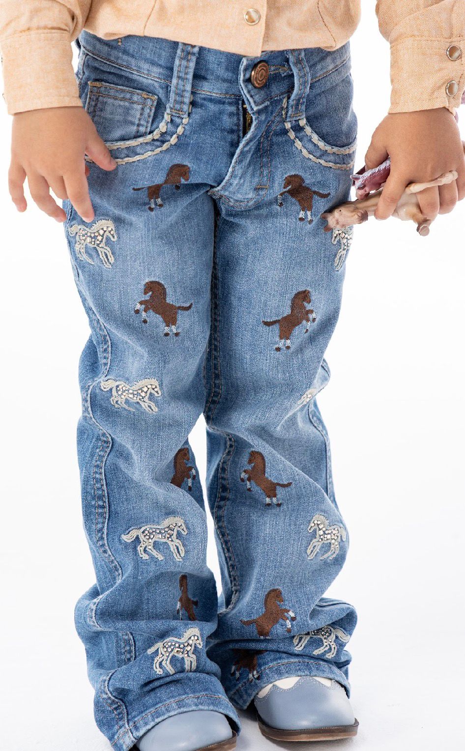 JEANS MENINA DE MODELAGEM FLARE. BORDADO DE PONTOS