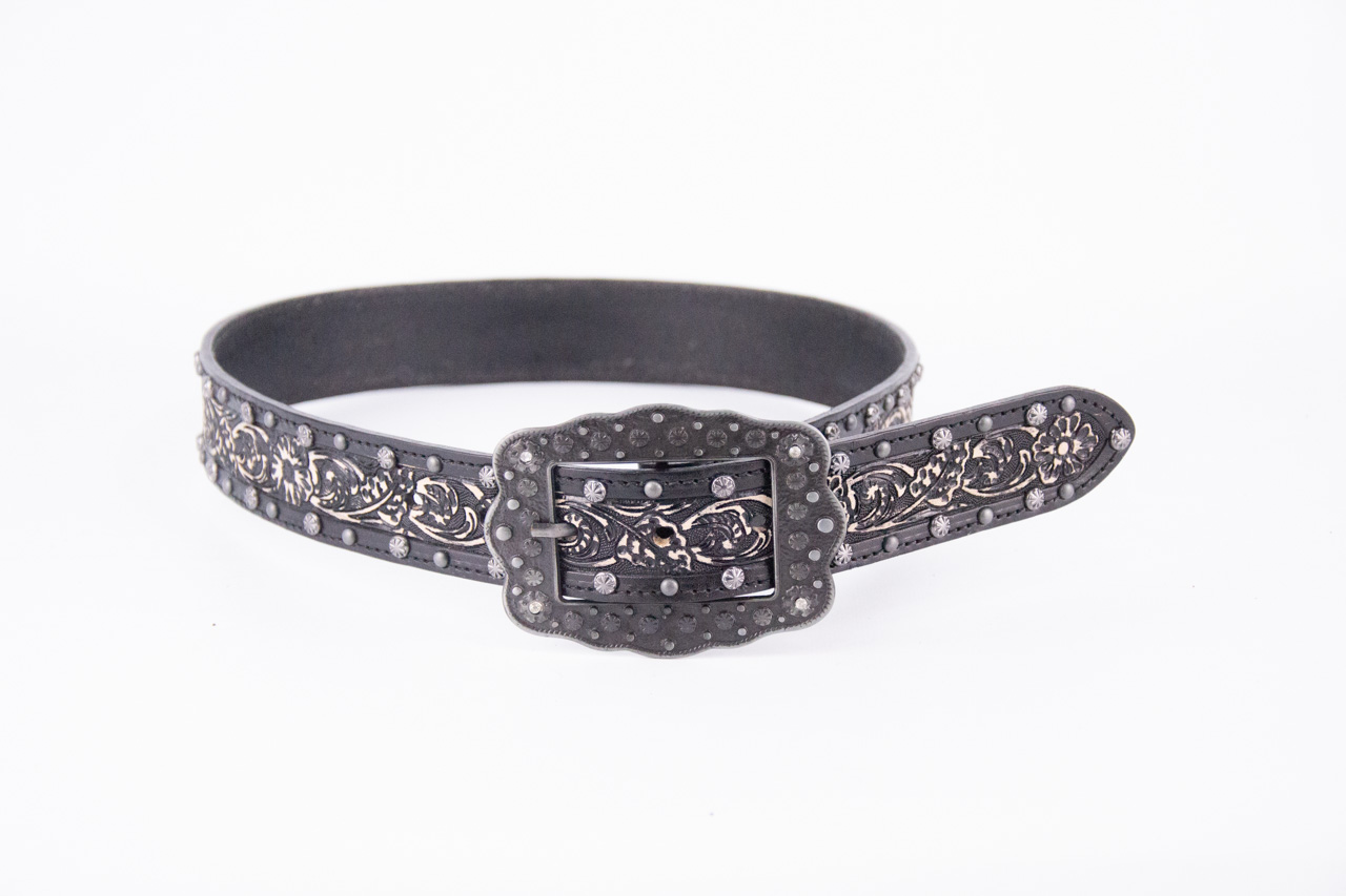 Fabricado em couro legítimo, 4,5cm de largura aprox, com detalhes em bordados (entalhados), charroas de material sintético e fivela de metal removível.