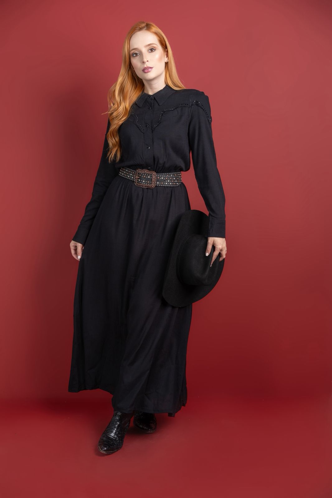 O vestido Feminino da Miss Country com franja é uma peça que traz um toque moderno e despojado ao look. É feita em tecido confortável que proporciona liberdade de movimento.