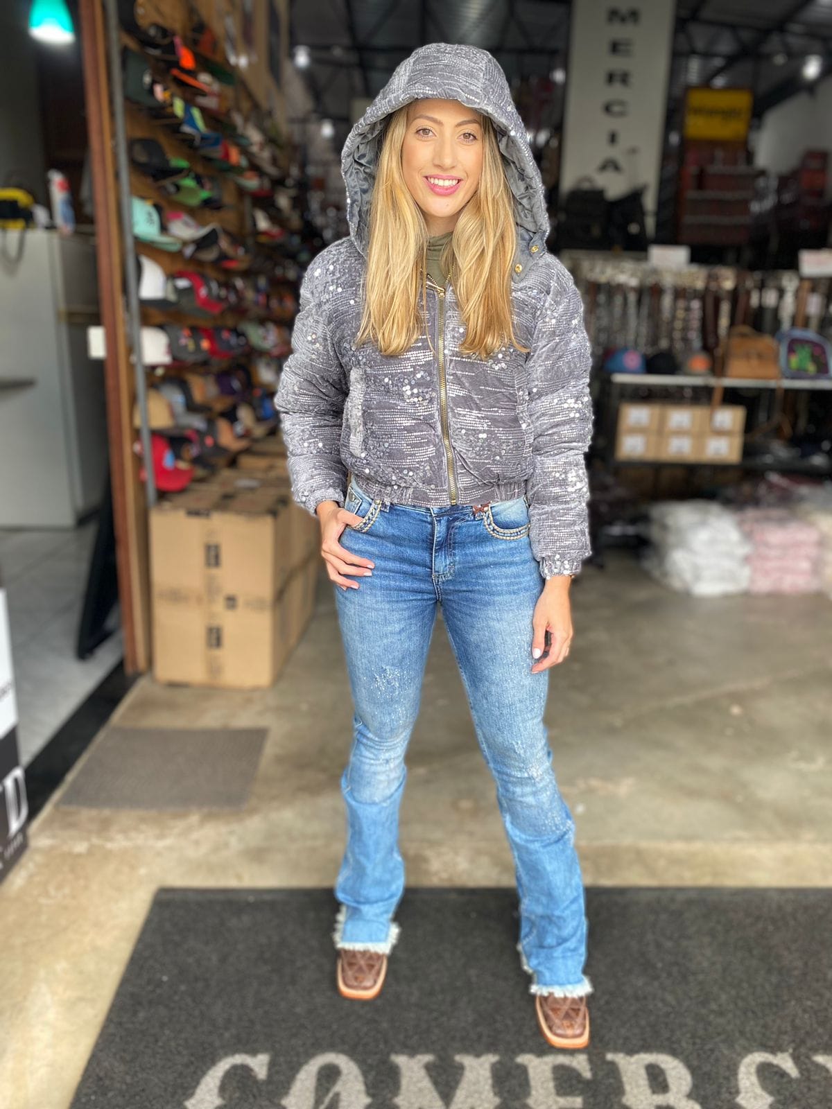 Jaqueta Feminina Brilho / Ana Castela / Cinza