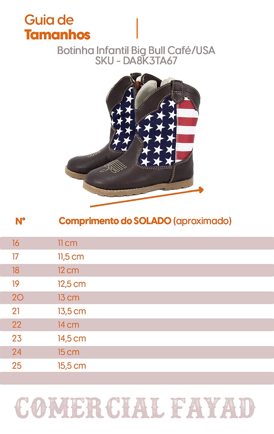 Selecione a opção de Tamanho da Bota: